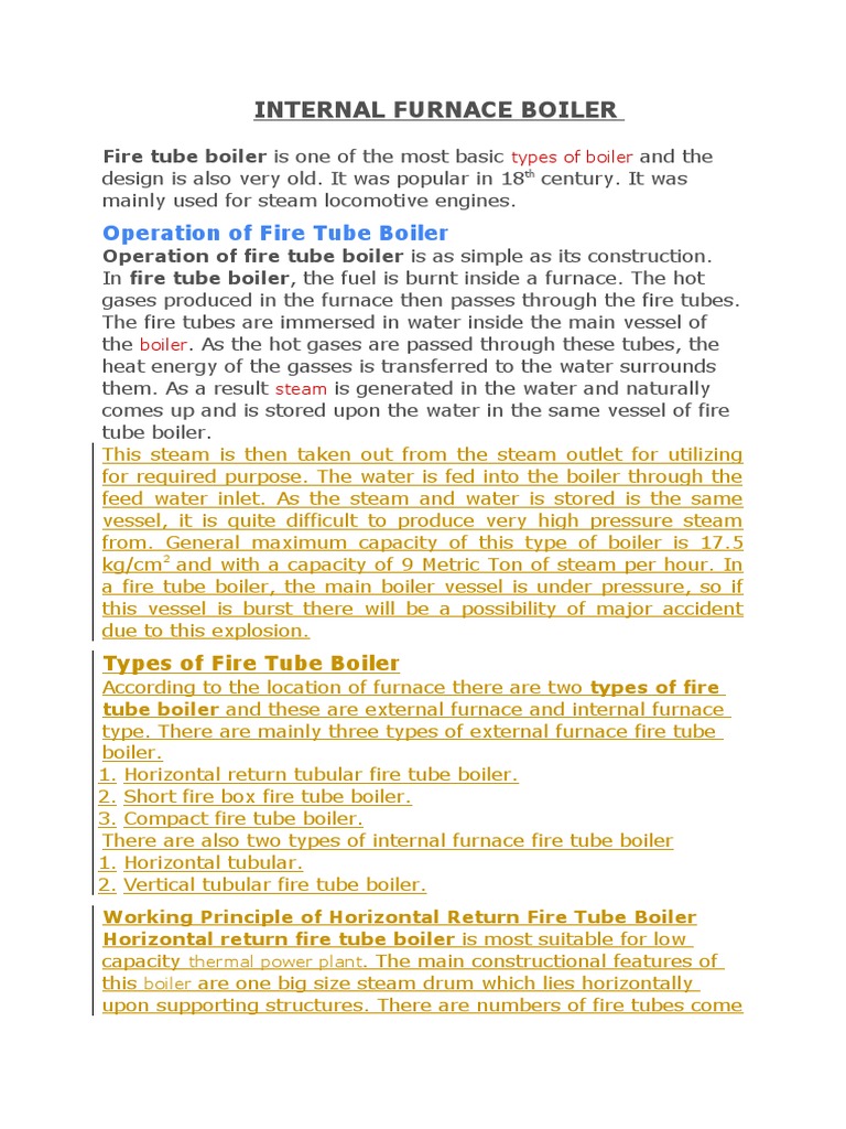 An Overview of the Internal Furnace Fire Tube Boiler Its Operating